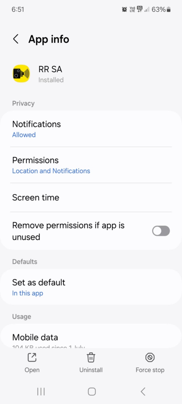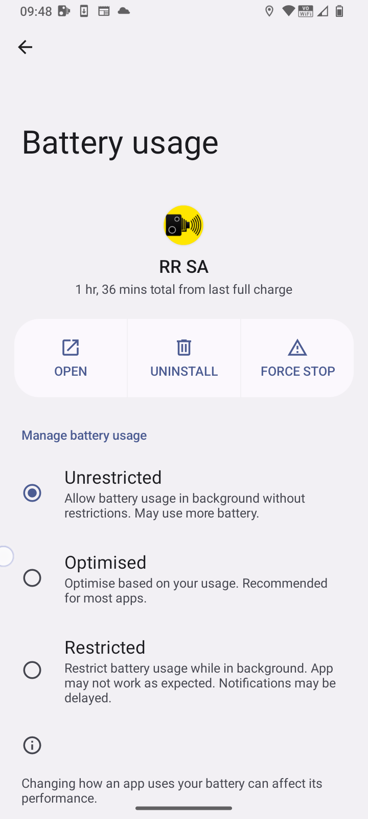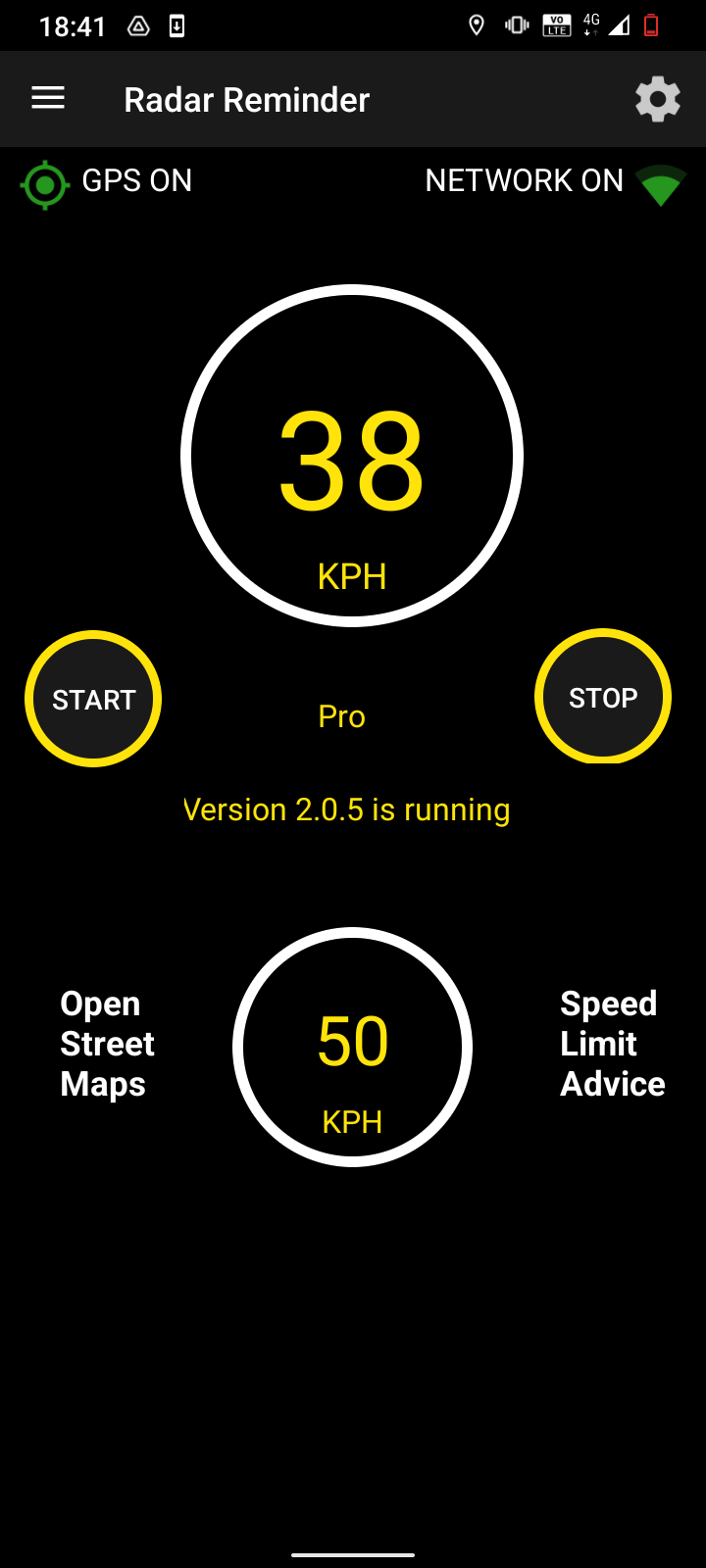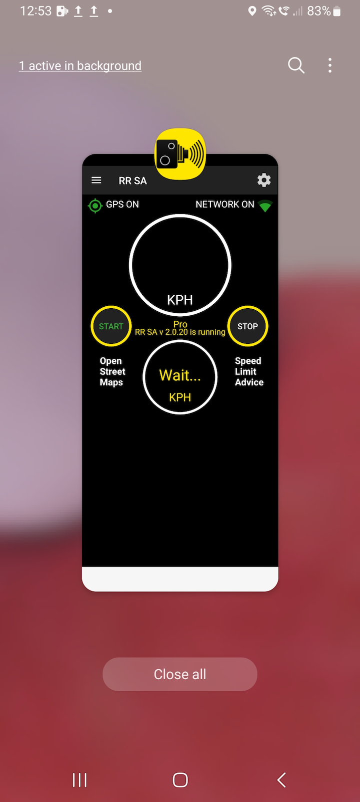 Radar Reminder Android app running in background.