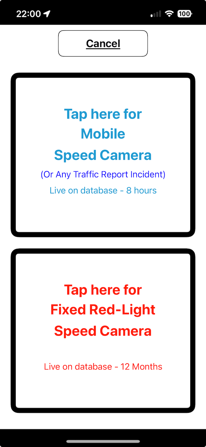 Mobile/Fixed Speed Cam Alert options