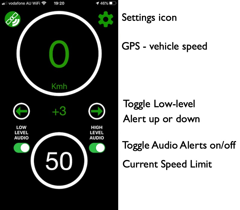 delivers an Audio and Visual and Haptic Alert from your phone to give you a warning to check your speed.